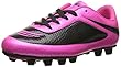 The NIKE Jr Mercurial Victory shoes are probably the most popular and best youth soccer cleats on the market today. The uppers are made with synthetic leather which is virtually indistinguishable from the real thing and provides a nice soft touch on the ball as well as fitting very comfortably. These cleats also feature firm-ground rubber studs which are perfect for almost all outdoor conditions.