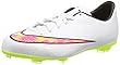 The NIKE Jr Mercurial Victory shoes are probably the most popular and best youth soccer cleats on the market today. The uppers are made with synthetic leather which is virtually indistinguishable from the real thing and provides a nice soft touch on the ball as well as fitting very comfortably. These cleats also feature firm-ground rubber studs which are perfect for almost all outdoor conditions.